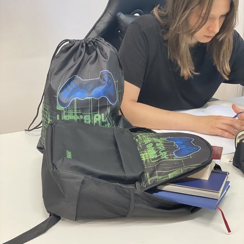 Sprav zo svojho každodenného nosenia zážitok s týmto 22-litrovým Gamer batohom, ktorý obsahuje aj extra vrecko na topánky a športový vak! Moderný dizajn inšpirovaný gamingom, vodeodolná tkanina Oxford 600D a pohodlné prevedenie – ideálna voľba pre študentov, gamerov a aktívnych ľudí.