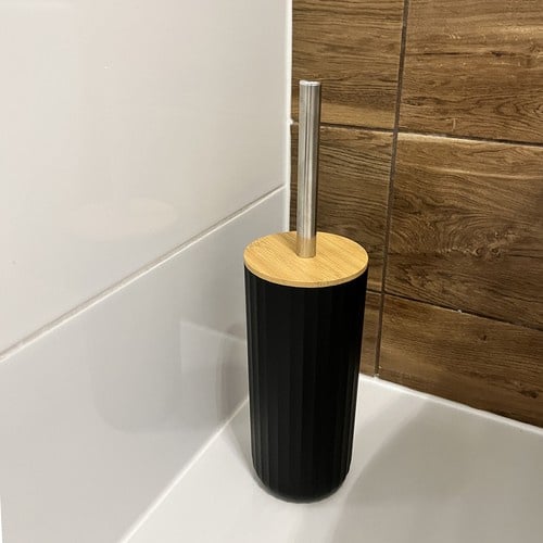 ✔ WC kefa s bambusovým vekom – rukoväť z nehrdzavejúcej ocele pre dlhú životnosť a bambusový kryt pre diskrétne a hygienické uloženie kefy.