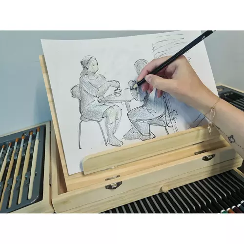 Táto rozsiahla 83-dielna súprava je ideálna pre všetkých milovníkov výtvarného umenia – či už ste začiatočník alebo pokročilý umelec. Všetko potrebné na maľovanie a kreslenie máte teraz pohromade v elegantnom, ľahko prenosnom drevenom kufríku.
