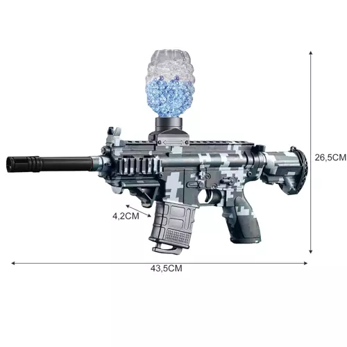 Táto gélová hračka umožňuje strieľať jednotlivo aj dávkovo a poskytuje skvelú zábavu na voľnom priestranstve. Vďaka priehľadnému zásobníku môžete jednoducho skontrolovať, koľko guličiek ešte zostáva. Zásobník má kapacitu až 600 BB gélových guliek.