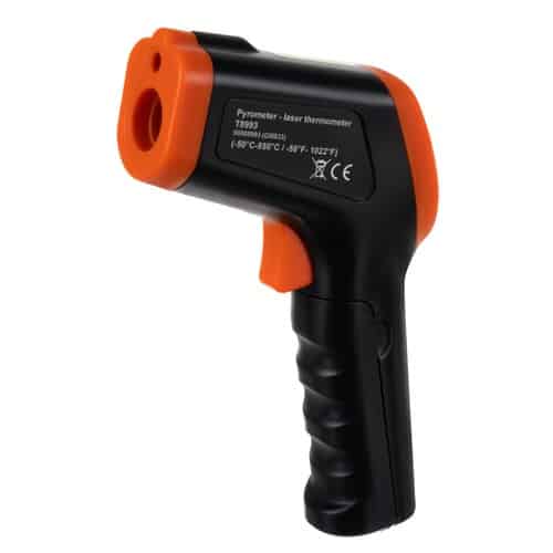 Presné meranie teploty bez dotyku – tento infračervený teplomer umožňuje rýchle a bezpečné meranie povrchovej teploty v rozsahu od -50 °C do 550 °C. Vďaka laserovému zameraniu ľahko namierite na požadované miesto bez fyzického kontaktu.