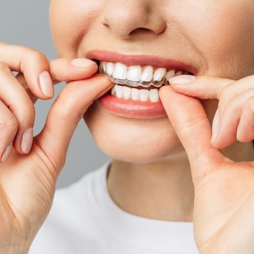 Vyberte a priložte na zuby, jemne stlačte, aby sa vytvarovala podľa vášho chrupu