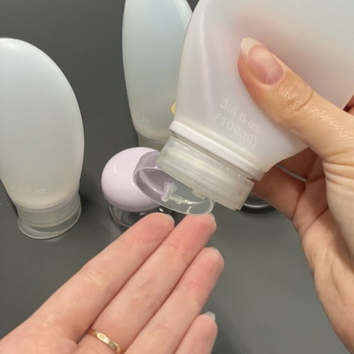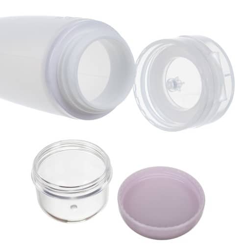 Fľaštičky a tégliky sú vyrobené z mäkkého, odolného materiálu, vďaka čomu sa ľahko stláčajú a dávkujú správne množstvo. Uzávery tesne priliehajú, čo eliminuje riziko vytečenia. Jednoduché otváranie a zatváranie zabezpečuje rýchly prístup ku kozmetike počas ciest.