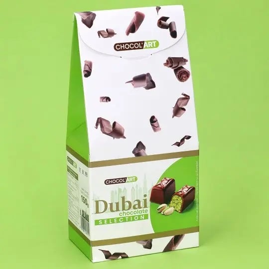 Dopraj si luxusný pôžitok s ChocolArt Dubai pistáciovými pralinami s kadayif cestovinou – jedinečná kombinácia jemnej mliečnej a bielej čokolády, bohatej pistáciovej náplne (11 %) a chrumkavej kadayif cestoviny (2,9 %). Každé sústo ponúka dokonalý balans medzi krémovou sladkosťou a jemnou chrumkavosťou.
