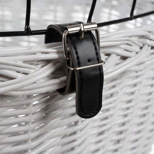 Kovová ochranná mriežka – Zabraňuje tomu, aby zviera vyskočilo z košíka. Tri nastaviteľné popruhy z ekologickej kože zabezpečujú pevné uchytenie a stabilitu počas jazdy aj na nerovnom teréne.
