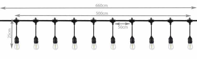 Vzdialenosť medzi žiarovkami: 50 cm