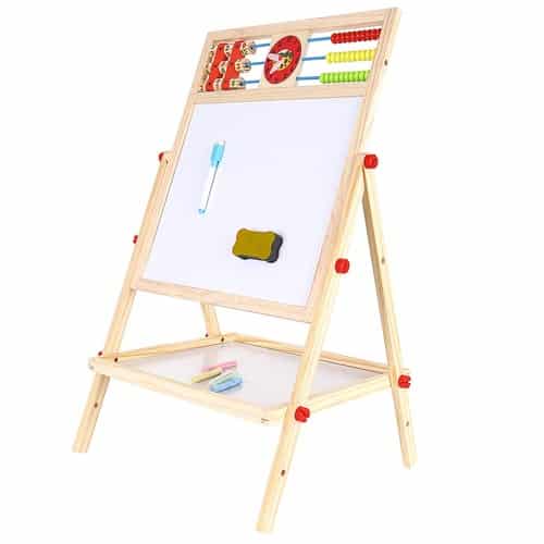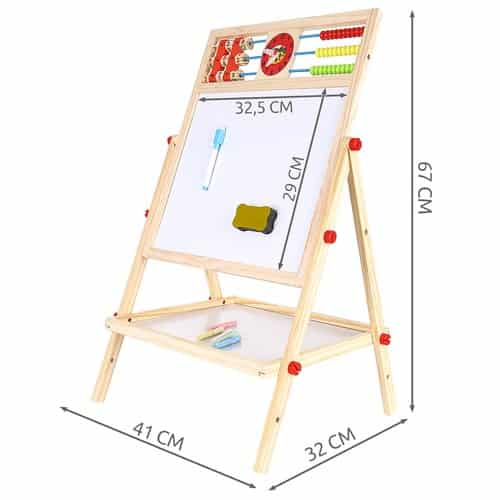 Podporte tvorivosť svojho dieťaťa s touto multifunkčnou drevenou obojstrannou tabuľou na stojane, ktorá je ideálnym nástrojom pre rozvoj výtvarných schopností, jemnej motoriky a fantázie.