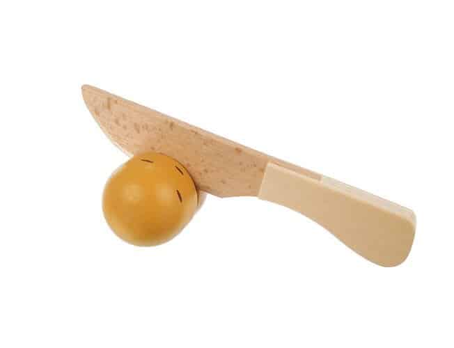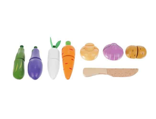 Tento interaktívny set je ideálnou hračkou pre všetky deti, ktoré rady pomáhajú v kuchyni a milujú napodobňovanie dospelých. Všetky kúsky sú vybavené suchým zipsom a dajú sa bezpečne “prekrojiť” dreveným nožom – potom znovu spojiť.