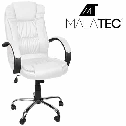 Kancelárska stolička, ktorá sa dokonale prispôsobí tvaru tela, čalúnená mäkkou ekologickou kožou. Zakrivené, široké sedadlo zaručuje maximálny komfort aj pri dlhodobom sedení. Vysoká integrovaná opierka hlavy a správne profilovanie zaručujú funkčnosť a podporu hlavy, zatiaľ čo široké sedadlo umožňuje pohodlnú prácu niekoľko hodín. Správne tvarované opierky rúk zvyšujú komfort používania a zmierňujú tlak na chrbticu. Päťuholníková základňa s dvojitými kolieskami sa ľahko otáča a poskytuje stabilný pohyb. Zabezpečte správnu polohu vášho tela!