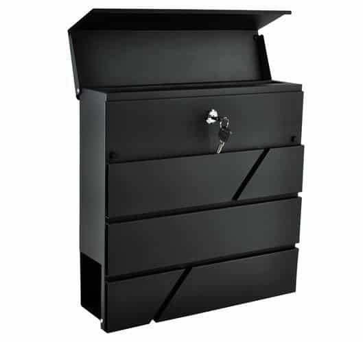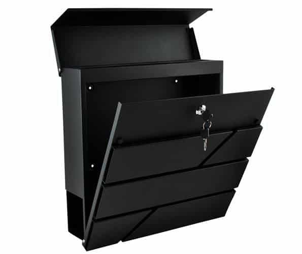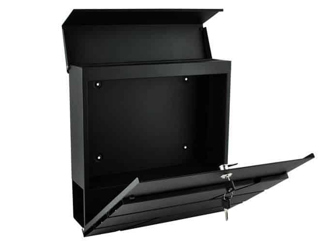 Schránka je vybavená dvoma samostatnými priehradkami – horná časť je uzamykateľná a chráni listy či pohľadnice pred dažďom, zatiaľ čo spodná otvorená priehradka slúži na noviny, letáky a reklamné materiály. Vďaka veľkému vhadzovaciemu otvoru sa listy dajú vložiť ľahko a bez poškodenia.