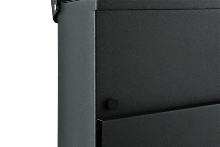 Vyrobená z pozinkovaného kovu, ktorý odoláva korózii a nepriaznivému počasiu. Špeciálne tvarované veko účinne odvádza dažďovú vodu, takže sa nedostane do vnútra schránky. Elegantný antracitový dizajn sa hodí k moderným aj klasickým stavbám.