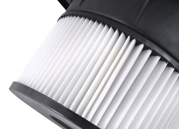 • Dvojitý filtračný systém: HEPA filter a textilný filter zabraňujú úniku jemného prachu, chránia motor a čistenie je hygienické. HEPA filter je umývateľný a opakovane použiteľný.