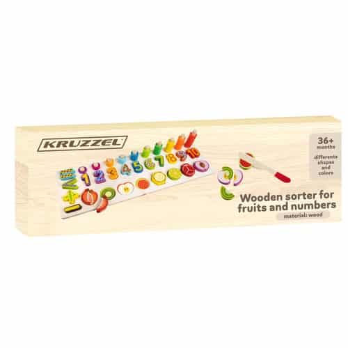 Krájateľné ovocie – drevené ovocie, ktoré sa dá rozpojiť a opäť spojiť, pomáha deťom cvičiť počítanie a chápanie častí.