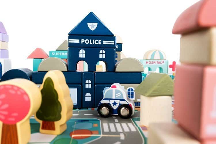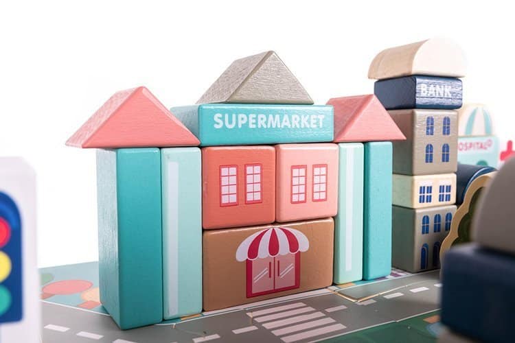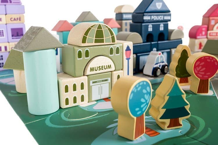 Kocky umožňujú postaviť rôzne obytné a verejné budovy, pričom súčasťou balenia sú aj drevené vozidlá, stromy, budovy a figúrky. Dieťa môže kocky ľubovoľne usporiadať – ulice budú zakaždým vyzerať inak a mesto sa môže skladať z rôznych typov stavieb. Hra podporuje rozvoj kreativity, fantázie a jemnej motoriky.