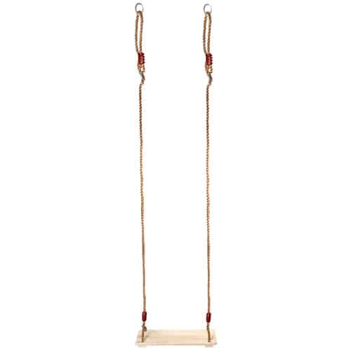Pevné a odolné prevedenie – drevené sedadlo, kovové úchyty a silné PE/PP laná