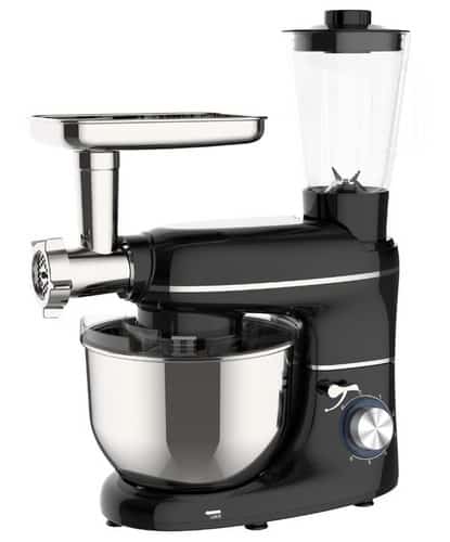 Tento kuchynský robot 3v1 s výkonom 2200 W je všestranný pomocník do každej kuchyne. Kombinuje kuchynský robot, mlynček na mäso a mixér s objemom 1,5 l, takže zvládne všetky úlohy od miešania a šľahania po mletie mäsa a mixovanie smoothie alebo omáčok.