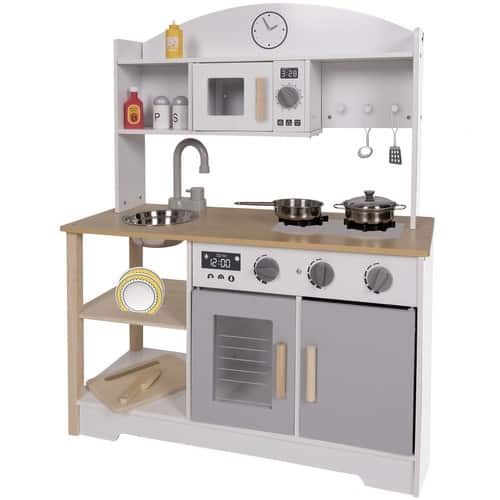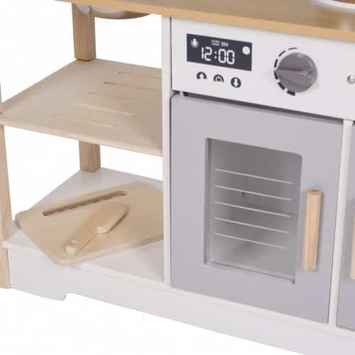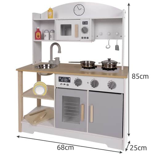 Kvalitná kuchynka vyrobená z dreva zaručuje dlhú životnosť a bezpečnú hru pre deti. Klasický dizajn a dôraz na detail dodávajú hre hodnotu a estetiku, pričom podporujú kreativitu a predstavivosť počas hrania rolí.