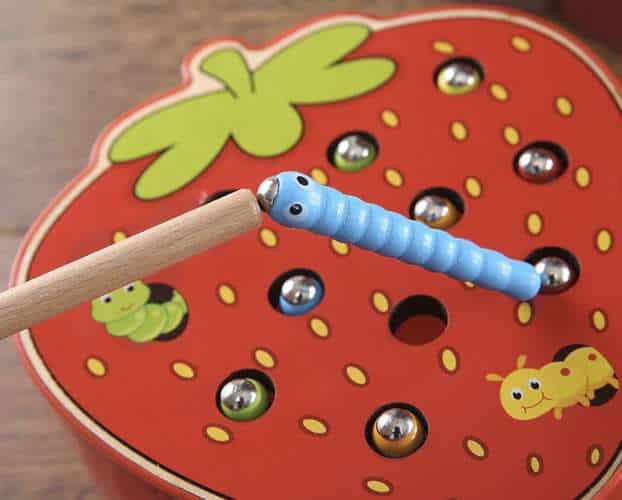 Oživte detské hry touto magnetickou edukačnou hrou, ktorá kombinuje zábavu s rozvojom jemnej motoriky, koordinácie oko–ruka a vizuálneho vnímania. Deti si budú loviť červíkov z drevenej “jahody” pomocou magnetickej udice, čo podporuje logické myslenie, trpezlivosť a tvorivosť.