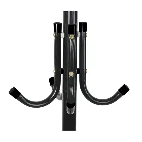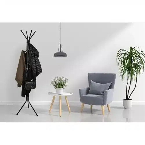 Moderný kovový stojanový vešiak – čierny, 12 háčikov