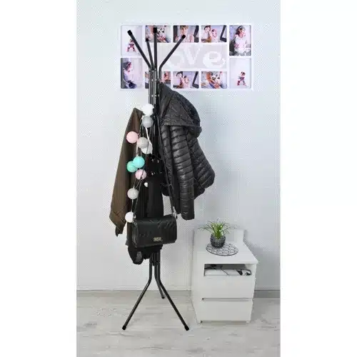 Udržuj poriadok doma alebo v kancelárii s týmto odolným stojanovým vešiakom, ktorý ponúka až 12 háčikov s plastovou ochranou na pohodlné odkladanie kabátov, tašiek, čiapok či dáždnikov – bez poškodenia odevov alebo stien.