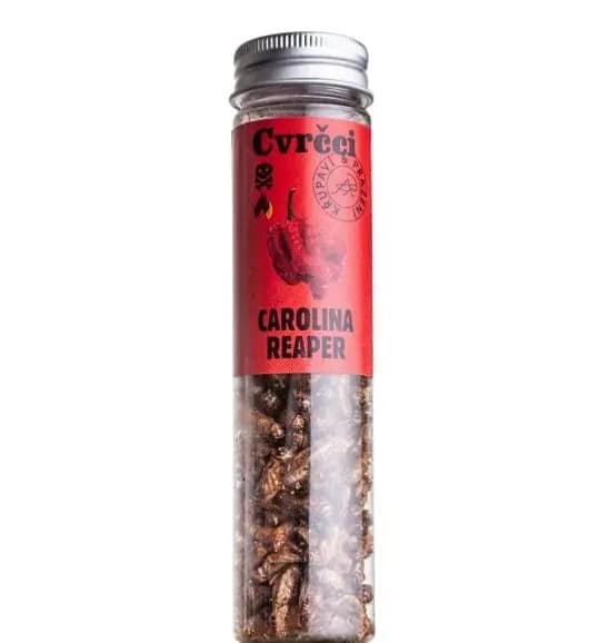 Hľadáš skutočne drsnú dávku pálivosti? Naše pečené cvrčky ochutené Carolina Reaper ti prinášajú najsilnejšiu paprikovú výzvu priamo do ruky. Táto odroda papriky je známa ako najostrejšia na svete, a v spojení s chrumkavou textúrou cvrčkov a morskou soľou vytvára nekompromisný snack pre odvážnych gurmánov.