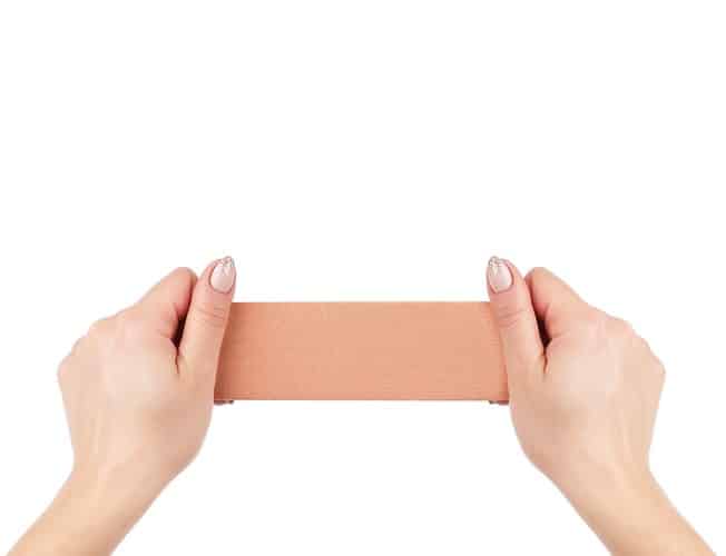 Silné, pružné lepidlo z nylonu a spandexu drží pevne celý deň. Odoláva potu aj vlhkosti – vhodné aj pod plavky.