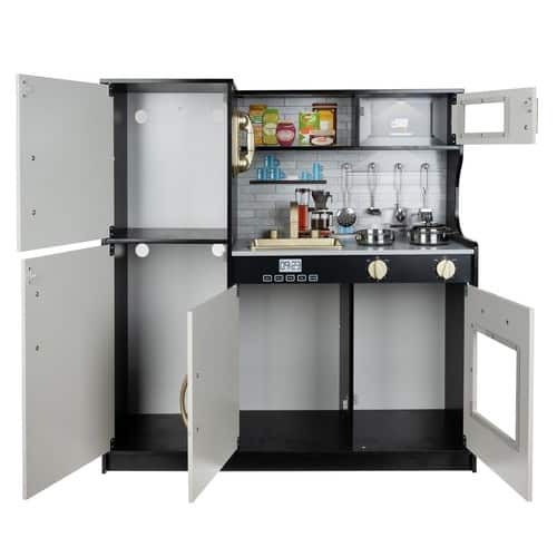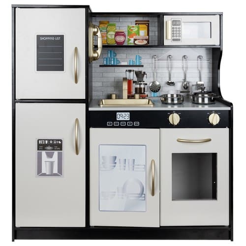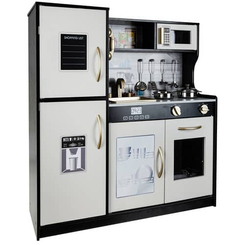 Deti sa prirodzene učia pozorovaním a napodobňovaním, a práve táto kuchynka im umožňuje rozvíjať predstavivosť a motorické schopnosti hravou formou. Vďaka robustnej drevenej konštrukcii a nadčasovému čierno-bielemu dizajnu bude navyše ozdobou každej detskej izby.