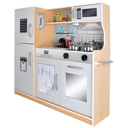 Univerzálne svetlé drevené prevedenie je vhodné pre chlapcov aj dievčatá a kuchynka sa hodí do každej detskej izby. Retro dizajn navyše z nej robí krásny dekoratívny doplnok.