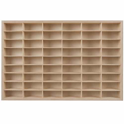 Táto drevená polica s 54 priehradkami je praktickým riešením aj originálnym doplnkom do detskej izby. Deti si vďaka nej s radosťou udržia poriadok vo svojej zbierke – všetko bude mať svoje miesto a už nebudú musieť hľadať veci v kôpkach na zemi.