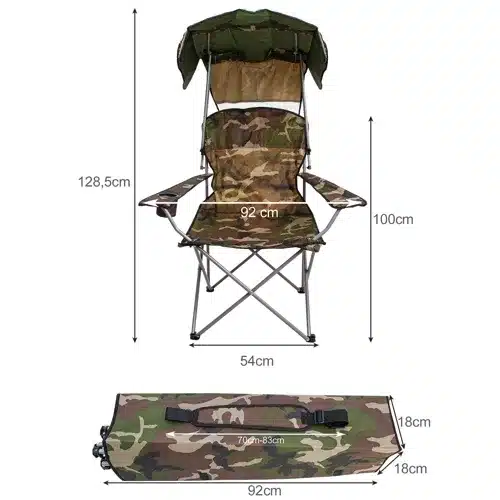 Táto veľká rybárska stolička je vybavená odnímateľnou a nastaviteľnou strieškou, ktorá poskytuje dokonalú ochranu pred slnečnými lúčmi. Vďaka ergonomickému dizajnu zaručuje pohodlné sedenie aj počas dlhých hodín pri vode alebo v prírode.
