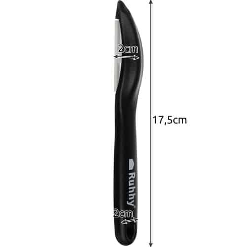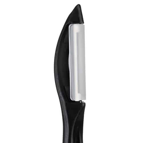 Špička s drážkou + háčik – na konci sa nachádza špeciálne profilovaná špička na odstránenie nežiaducich častí zo šúpanej zeleniny či ovocia. Rukoväť je vybavená háčikom na jednoduché zavesenie po použití.
