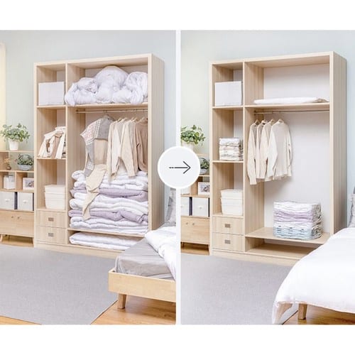 Jednoducho vlož oblečenie, periny alebo iné textílie do vaku, pripoj vysávač a odsaj vzduch. Objem sa zmenší až o 80 %, čo znamená, že do jedného vaku sa pohodlne zmestia aj 4 periny. Perfektné riešenie na usporiadané skrine, pivnice či pri sťahovaní.