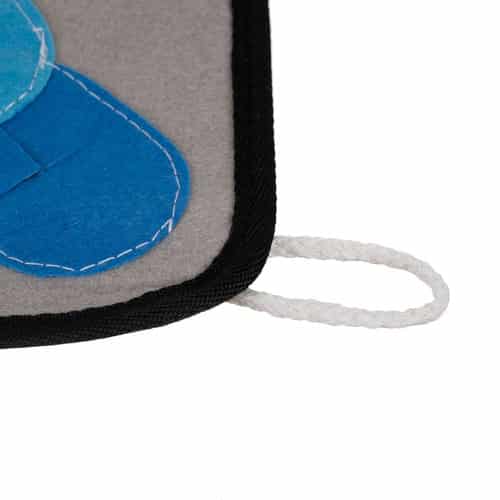 Deka je vybavená dvoma suchými zipsami na spodnej strane, ktoré umožňujú zložiť ju na polovicu a bezpečne spojiť oba konce. Štyri popruhy v rohoch slúžia na zavesenie deky napríklad na stenu alebo do klietky, čím sa zvyšuje jej všestrannosť a použiteľnosť.