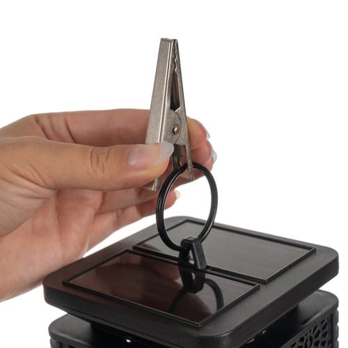 Lampa je vybavená praktickým klipom a kruhom na zavesenie, takže ju jednoducho pripevníte na stenu, plot alebo záhradný stĺp. Laserovo vyrezávaný vzor dodáva lampe jedinečný štýl a zabezpečuje rovnomerné rozptýlenie svetla do všetkých strán. Vrchný diel lampy sa dá otočiť a vysunúť pre jednoduchý prístup k solárnemu panelu a vypínaču.