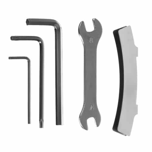 Pomôcky na ručné brzdy: lievik, zátky piestov, kľúče (imbusové, torx, očkové)