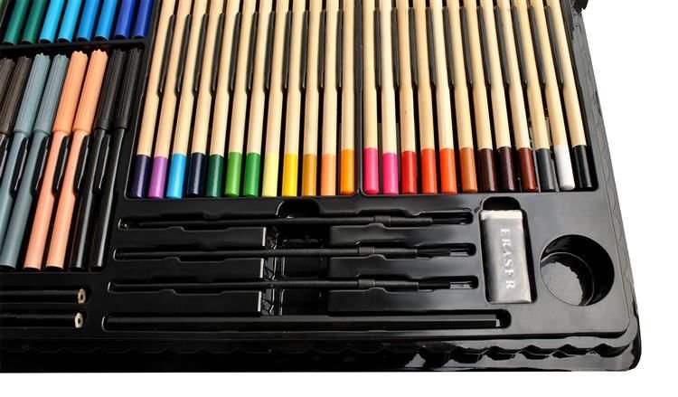 Kombináciou voskových pasteliek, vodových farieb, fixiek, farebných ceruziek a ďalších doplnkov táto sada poskytuje všetko, čo malý umelec potrebuje na vyjadrenie svojho vnútorného sveta – a to štýlovo a organizovane, v praktickom skladacom kufríku.