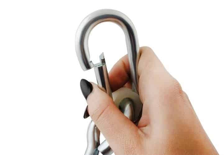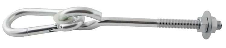 Využite tento odolný hák s karabínou na bezpečné zavesenie hojdačky, závesného kresla či športových lán vo vašej záhrade či interiéri!